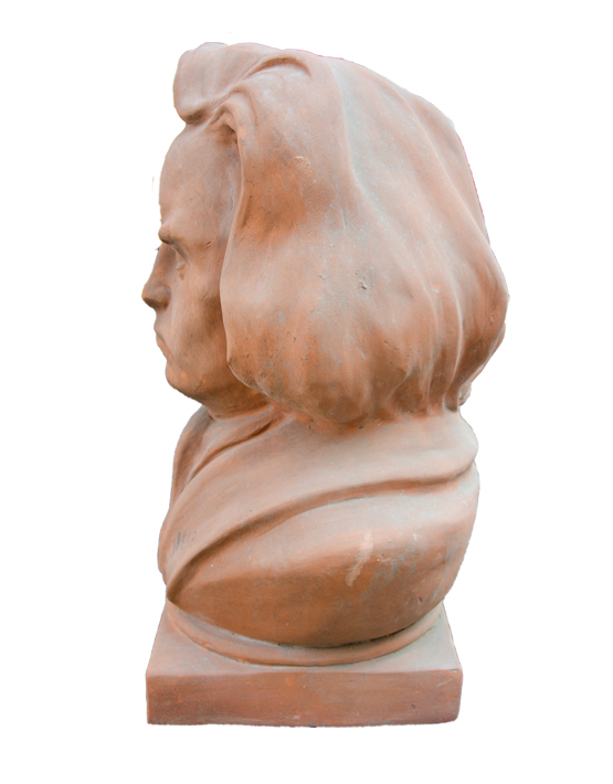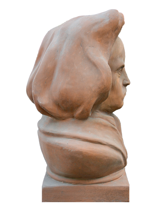 View the embedded image gallery online at: https://www.tonazzosrl.it/index.php/prodotti/giardino/angeli-fate-e-elfi?filter_catid=92#sigProIdf735dcc05a Busto Beethoven in terracotta senese.