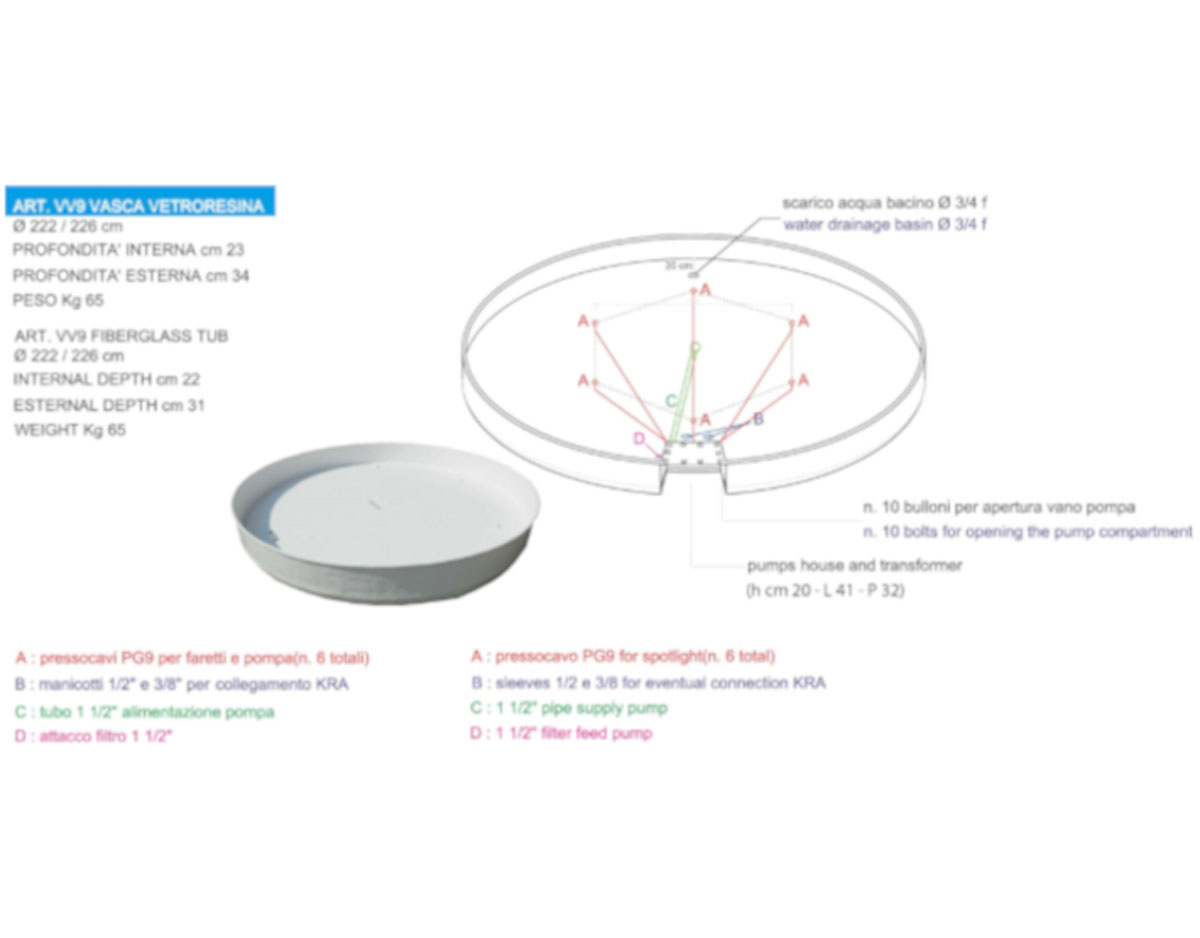 Vasca in vetroresina VV9 : h 34 cm + ø 222/226 cm + peso kg 65