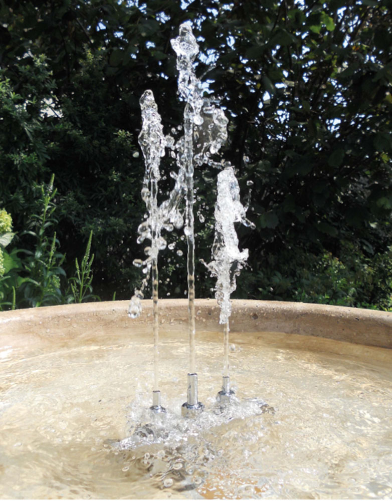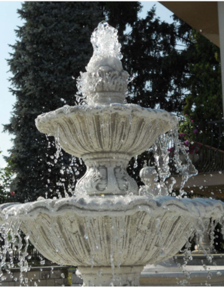Le nostre fontane, concepite per l’esterno, funzionano con l’ausilio della pompa a circuito chiuso e non necessitano di collegamento idrico. Durante il funzionamento l’acqua potrebbe spruzzare all’esterno delle vasche a causa del veloce ricircolo o per agenti esterni quali il vento. La pompa non deve funzionare senz’acqua.