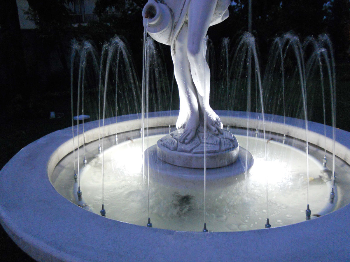 Le nostre fontane, concepite per l’esterno, funzionano con l’ausilio della pompa a circuito chiuso e non necessitano di collegamento idrico. Durante il funzionamento l’acqua potrebbe spruzzare all’esterno delle vasche a causa del veloce ricircolo o per agenti esterni quali il vento. La pompa non deve funzionare senz’acqua.