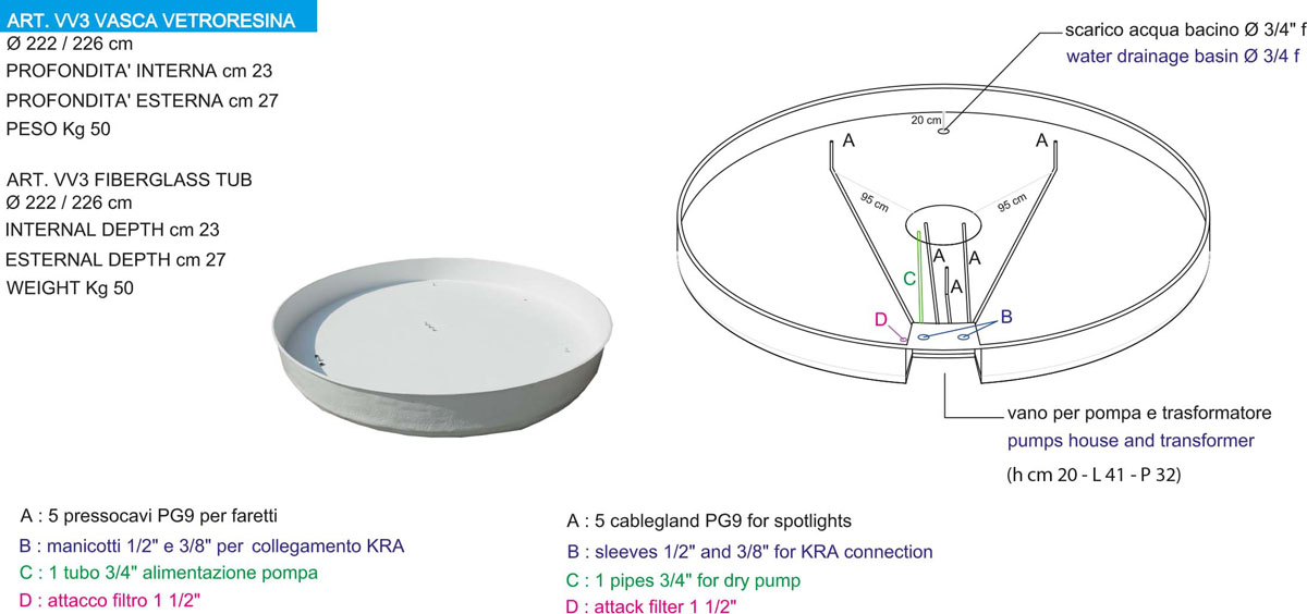 Vasca in vetroresina VV3 : h 27 cm + ø 222/225 cm + peso kg 50